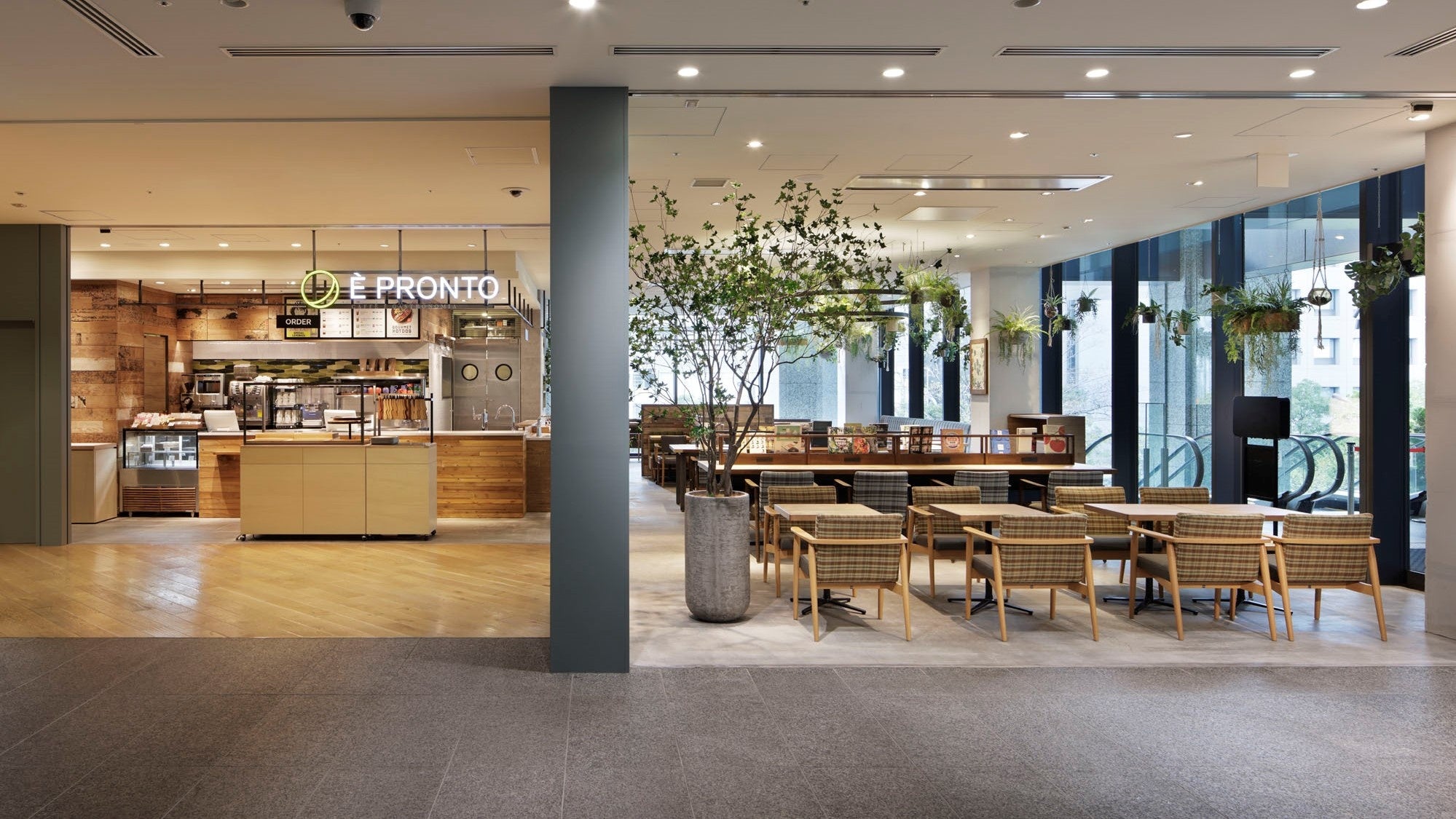 「È PRONTO(エプロント)」とは、イタリア語で「準備OK」「ご飯できたよ」という家庭的な言葉。様々な人々が行き交い、好きな時に好きなだけ時間を過ごす場所。程良く気持ち良く、誰もがとけ込めるカフェ。エプロントは、あらゆる人々の心と生活に心地よくフィットする、とっておきの“自分の場所”として一日中お好きなシーンで寛ぎの時間をお過ごしいただけます。