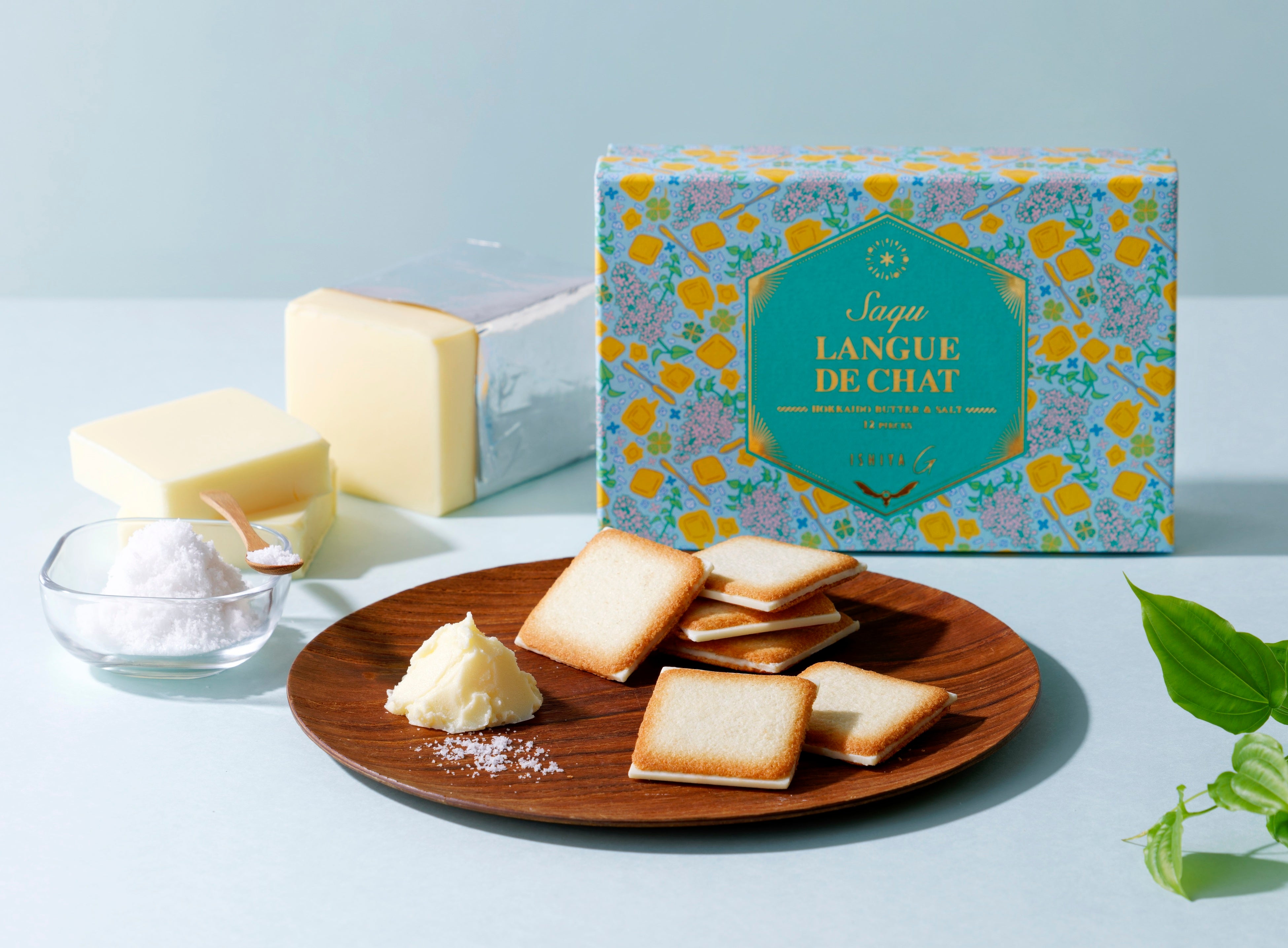 北海道産よつ葉バターが入ったラング・ド・シャで、オホーツクの塩を練りこんだバターソルト風味のチョコレートをサンドしました。
