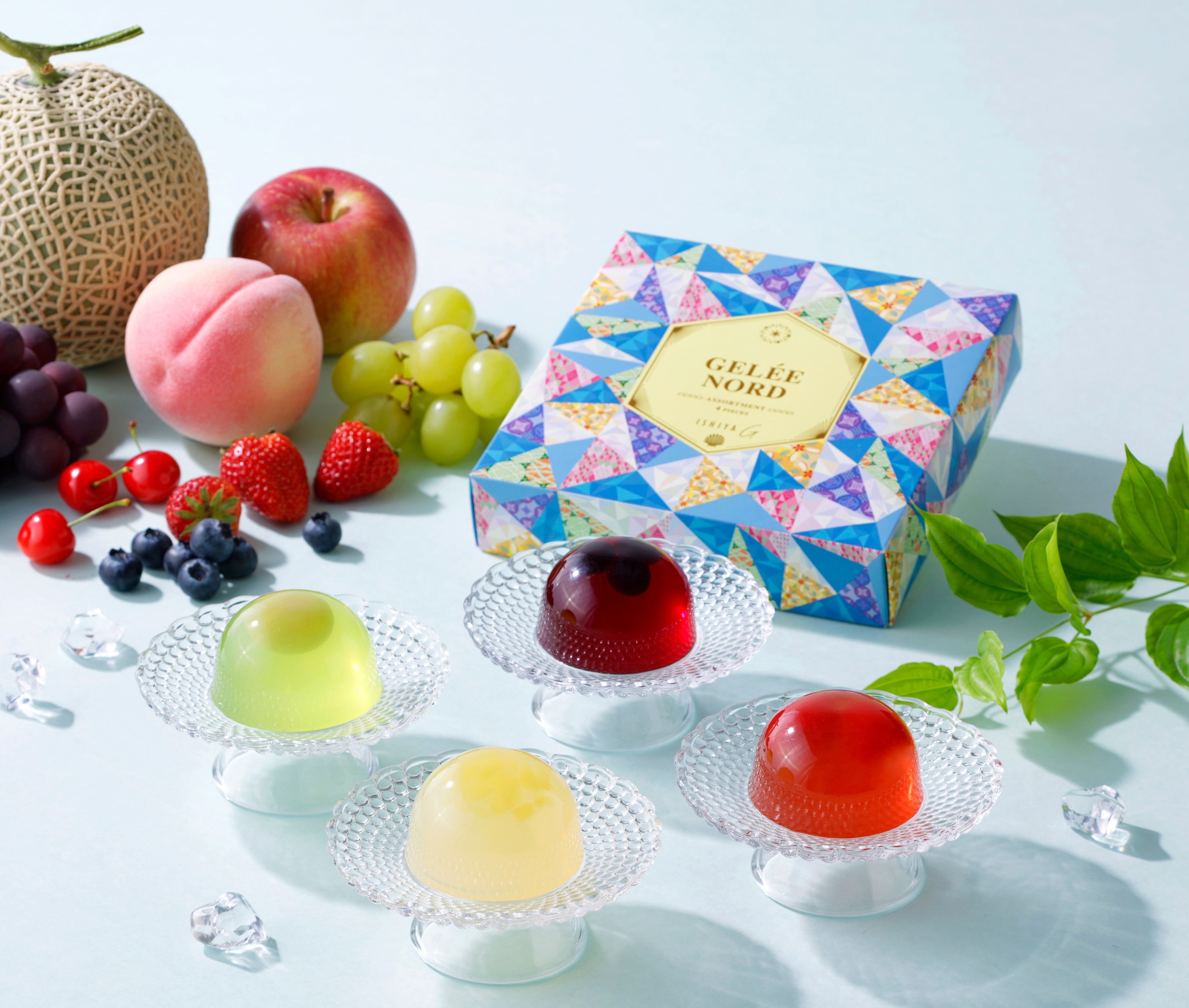 また、夏の期間限定商品とISHIYA Gの人気商品を詰め合わせた「ザ・コレクション サマーアソート」は、夏の風物詩である花火を描いた華やかなパッケージで、季節感あふれる贈り物としてもおすすめです。さらに、北海道産フルーツと、その美味しさを引き立てる果実とのマリアージュで生まれた、まるで宝石のようなゼリー「ジュレノール」が今年も登場いたします。暑い日には冷やしても、凍らせてもおいしくお召し上がりいただける、ISHIYA Gこだわりの一品です。