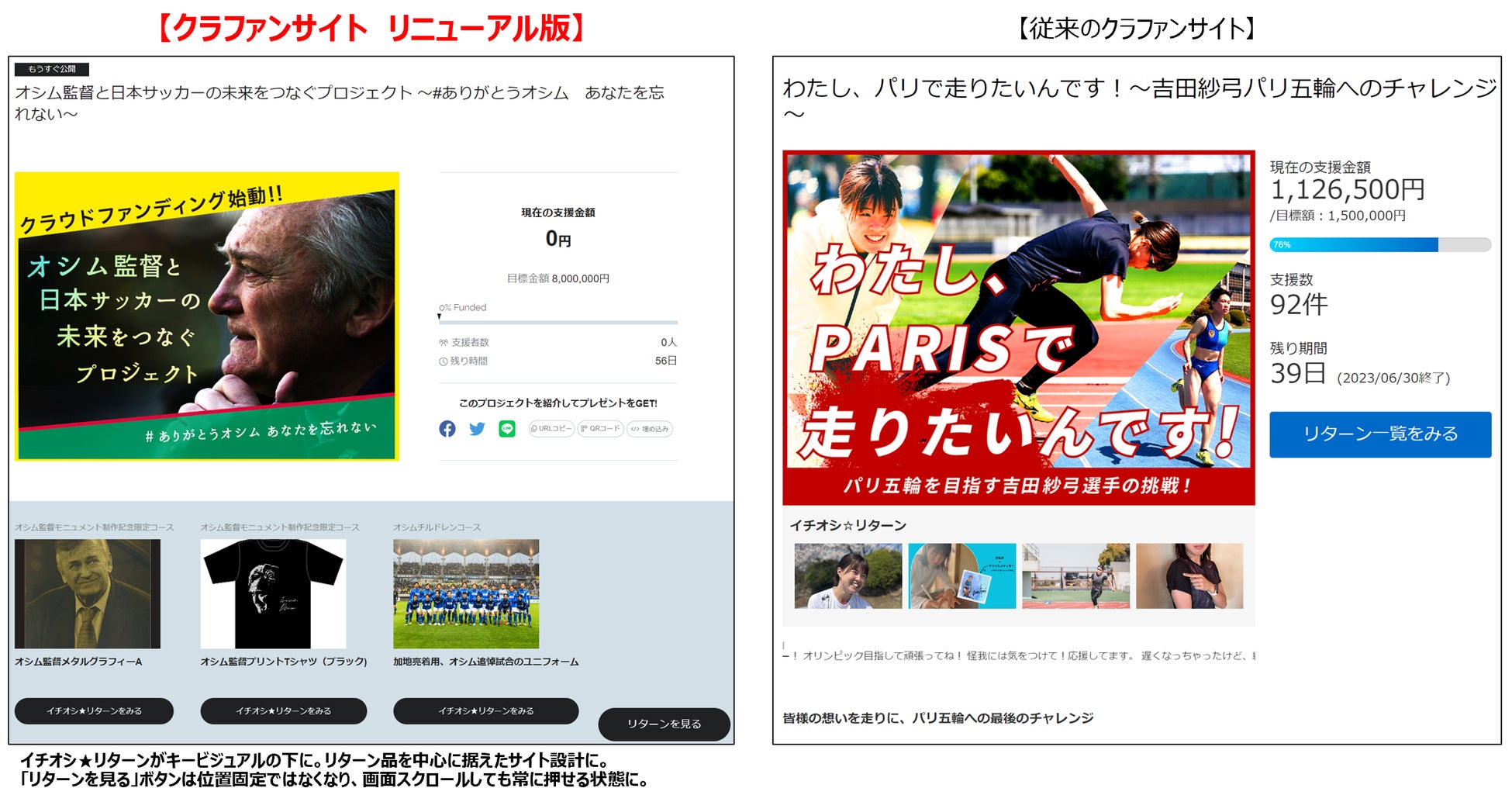 さらに、クラファンサイトはスポチュニティのブランディングテーマ「情熱的でインテリジェンス」をコンセプトとした新たなデザインを採用しています。