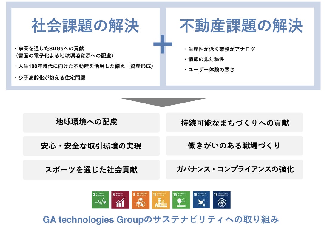 近年、当グループでは、社会および不動産業界の課題解決とサステナブルな事業成長を目指し、「地球環境への配慮」「持続可能なまちづくりへの貢献」「安心安全な取引環境の実現」「働きがいのある職場づくり」「スポーツを通じた社会貢献」「ガバナンス・コンプライアンスの強化」という6つのテーマに取り組んできました。