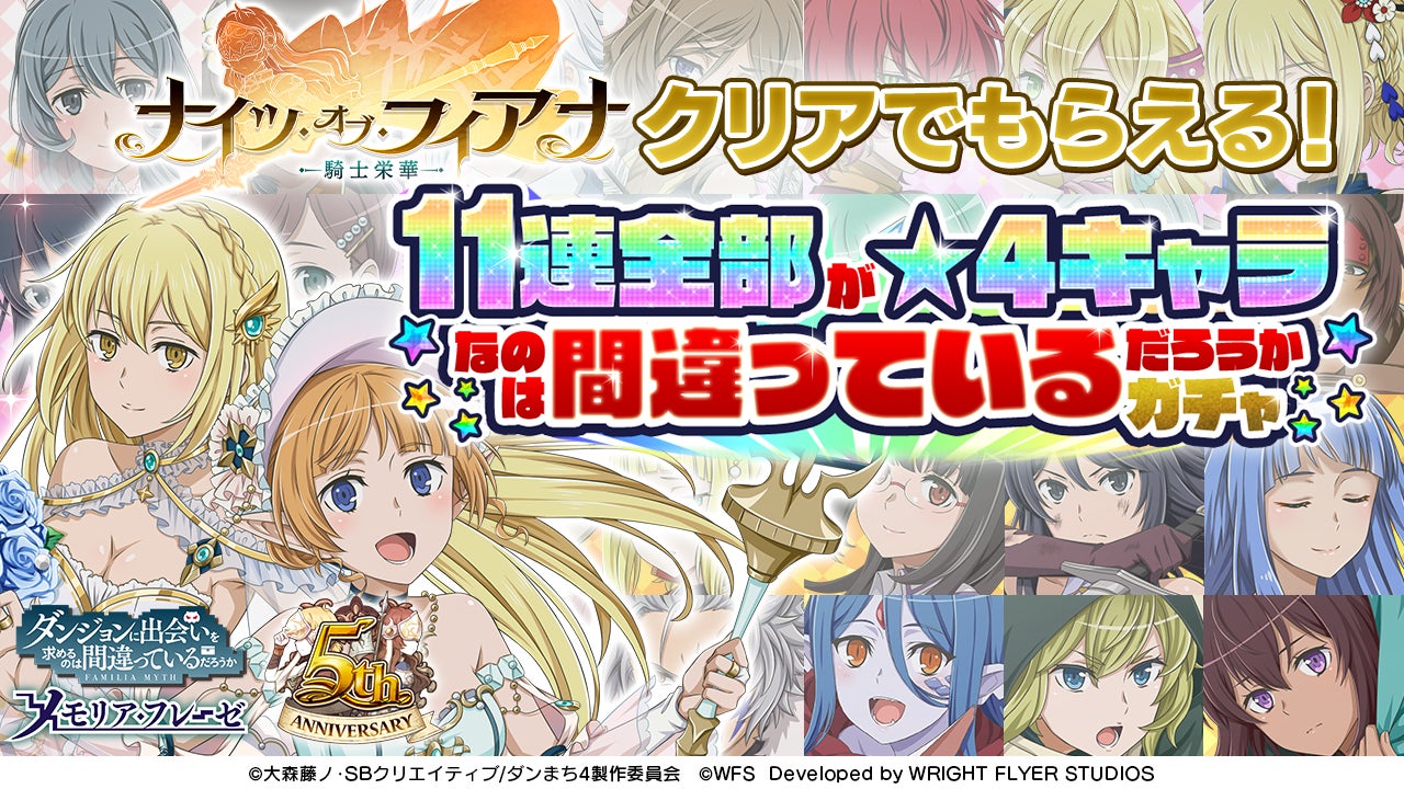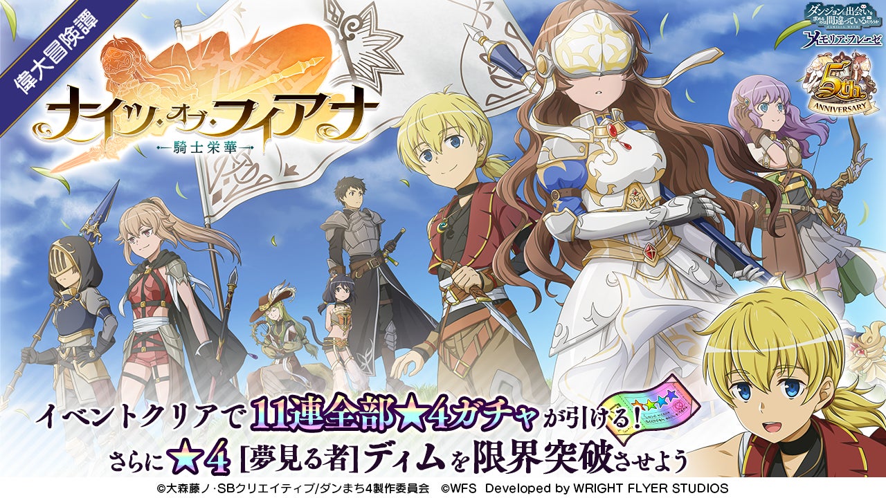 「ダンジョンに出会いを求めるのは間違っているだろうか〜メモリア・フレーゼ〜」リリース5周年記念し、原作・大森藤ノ 書き下ろしのオリジナルシナリオ「ナイツ・オブ・フィアナ」を配信開始