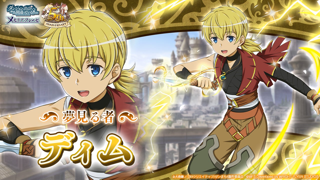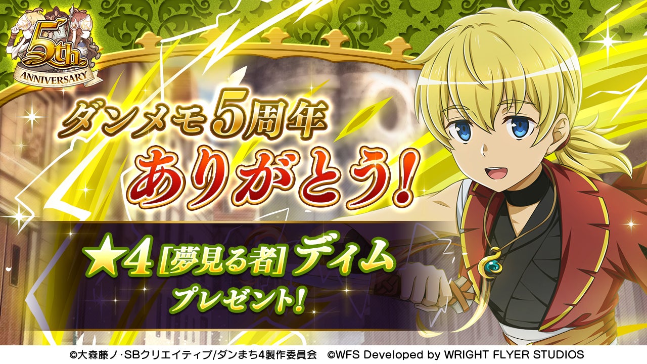 ダンメモ5周年を記念し、★4【夢見る者】ディムを期間中にログインした方全員にプレゼントします。