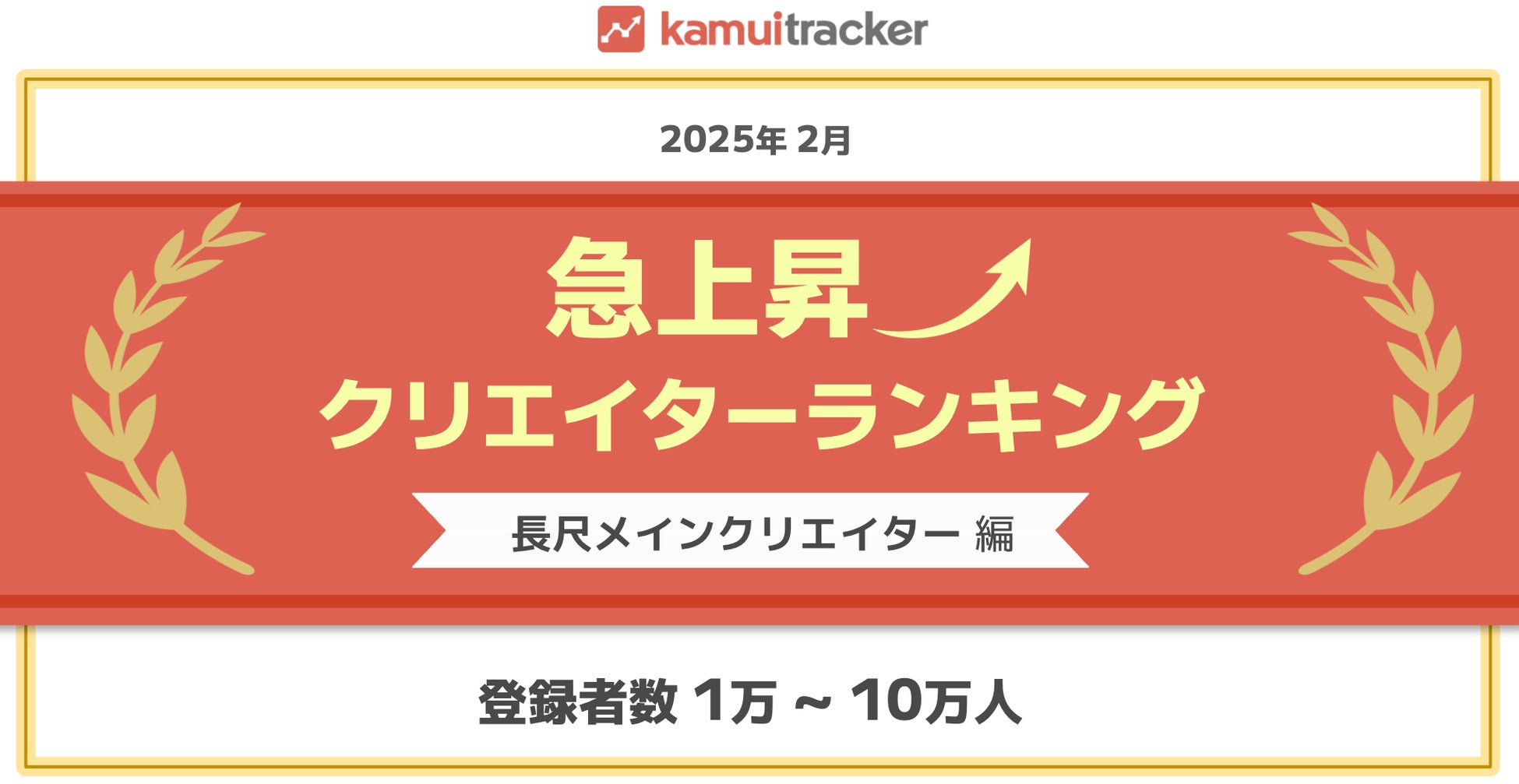 株式会社エビリー(本社:東京都渋谷区、代表取締役社長:中川恵介 以下、エビリー)は、2025年1月11日〜2025年2月9日の調査期間において、「急上昇クリエイターランキング」を作成しました。本ランキングは、日本国内で登録者数1万人〜10万人の中規模チャンネルを対象とし、通常動画(ショート動画を除く)をメインに取り扱っているクリエイターのうち、特に短期間でチャンネル登録者数を大幅に増やしたクリエイターを選出しています。