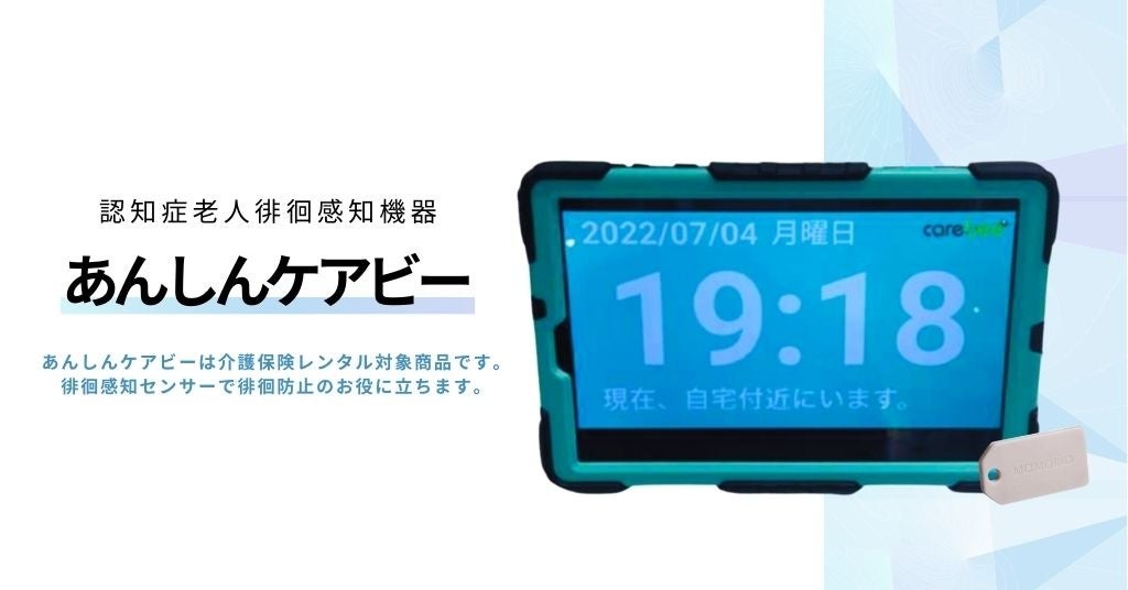 その中核サービスの一つが、要介護者の徘徊感知やコミュニケーションに活用できる「あんしんケアびー」です。