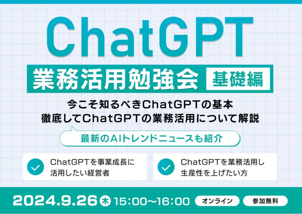 そんな方は、ぜひ奮ってご参加ください。ChatGPTのビジネス活用に衝撃を受けていただけると思います。