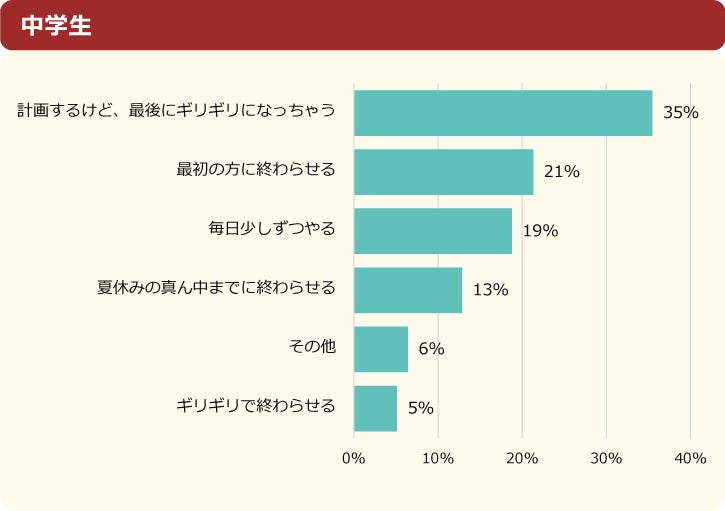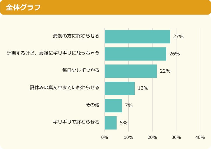 その他には「やる気になったときにやる」「簡単な宿題は最初の方、自由研究や読書感想文はあとにやる」といった意見もあがっていました。