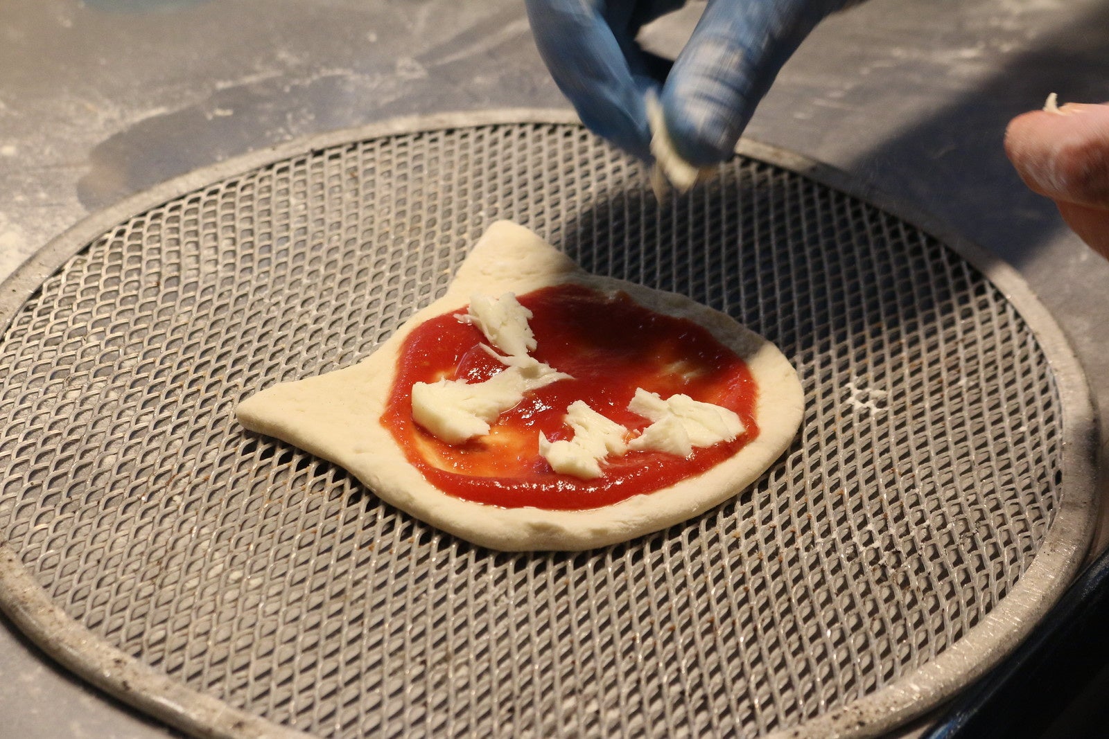 猫型であっても生地は1枚1枚ご注文後に伸ばして成型。店内の石窯で焼き立てをご提供します。