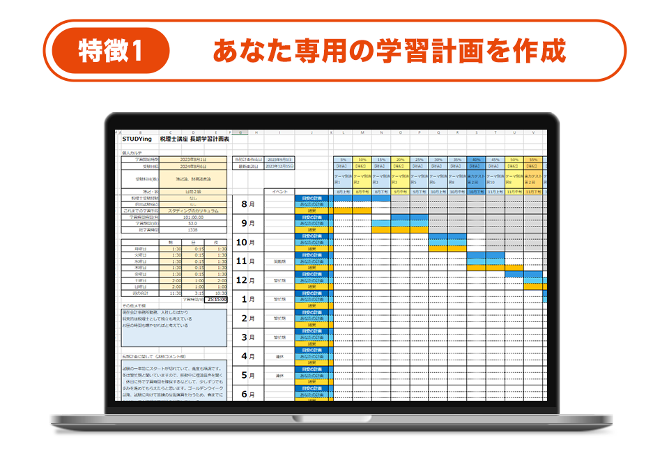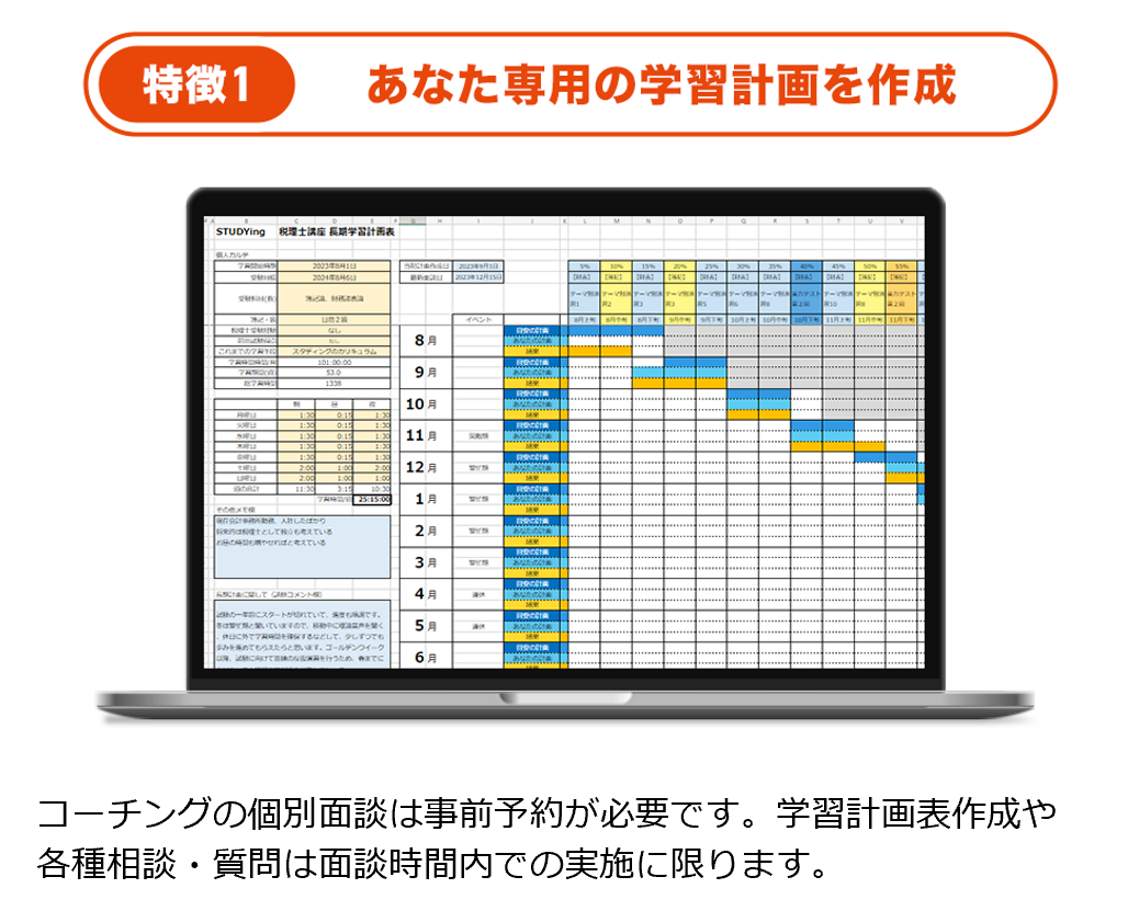本サービスでは、受講生それぞれに合わせた「個別学習計画表」を作成していきます。