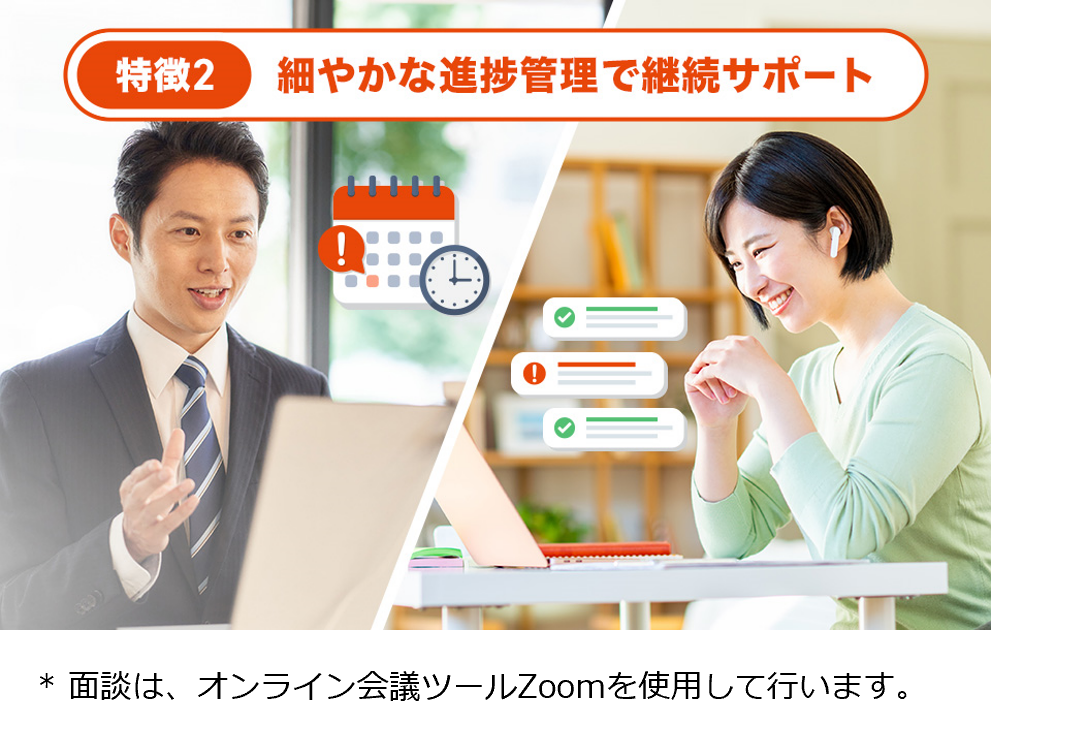 忙しい社会人の方が、理想のスケジュール通りに学習を進めていくのは簡単なことではありません。そこで、本サービスでは、月2回の個別面談で、進捗の聞き取り、お仕事の状況の確認、一緒に学習計画を見直しながら、学習のペースメイクをお手伝いします。