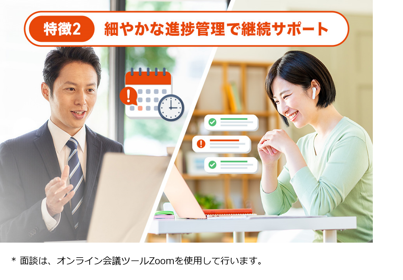 2)月2回の細やかな学習進捗管理。モチベーションを保ちながら学習が続けられる。