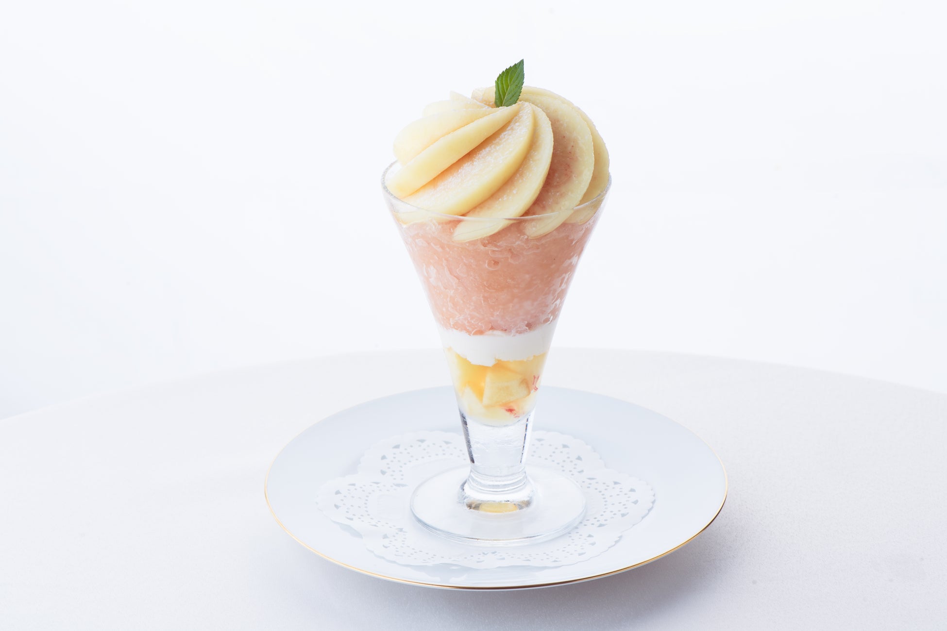 旬のメロンのおいしさがぎゅっと詰まった「メロンパフェ」に、完熟の白桃をまるごと使った「白桃パフェ」