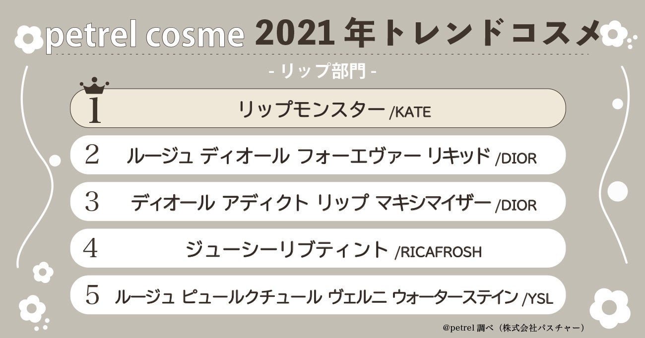 【2021年ベストコスメ大賞】をPetrelが発表!SNSで話題となった「リップモンスター」など若者の注目コスメ続々。