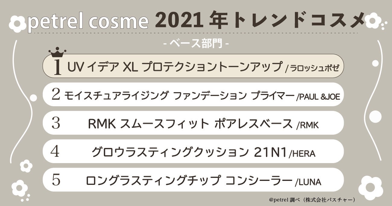 株式会社パスチャー(本社:東京都渋谷区、代表取締役:甲斐 優理子、以下当社)が企画・運営を手掛ける流行先取りメディア「Petrel(ペトレル)」は、流行に敏感な10代〜20代女性を対象とした調査に基づく「2021年ベストコスメ大賞」を発表いたします。