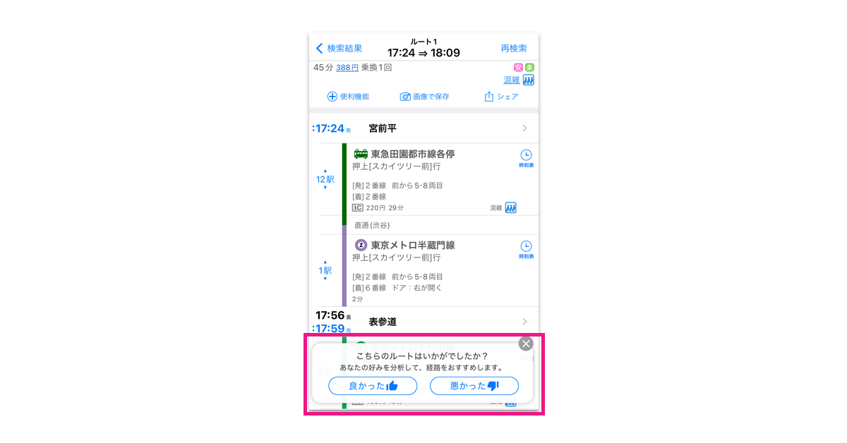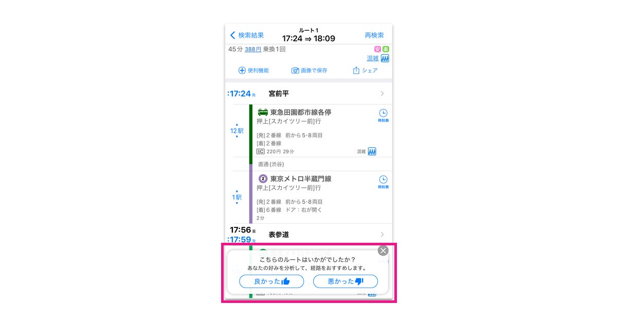 今後もナビタイムジャパンでは、一人ひとりのユーザーに最適な、よりパーソナライズされたおすすめのルートを提案できるよう、利用者のフィードバックをもとに、さらなるルート品質の向上に努めてまいります。