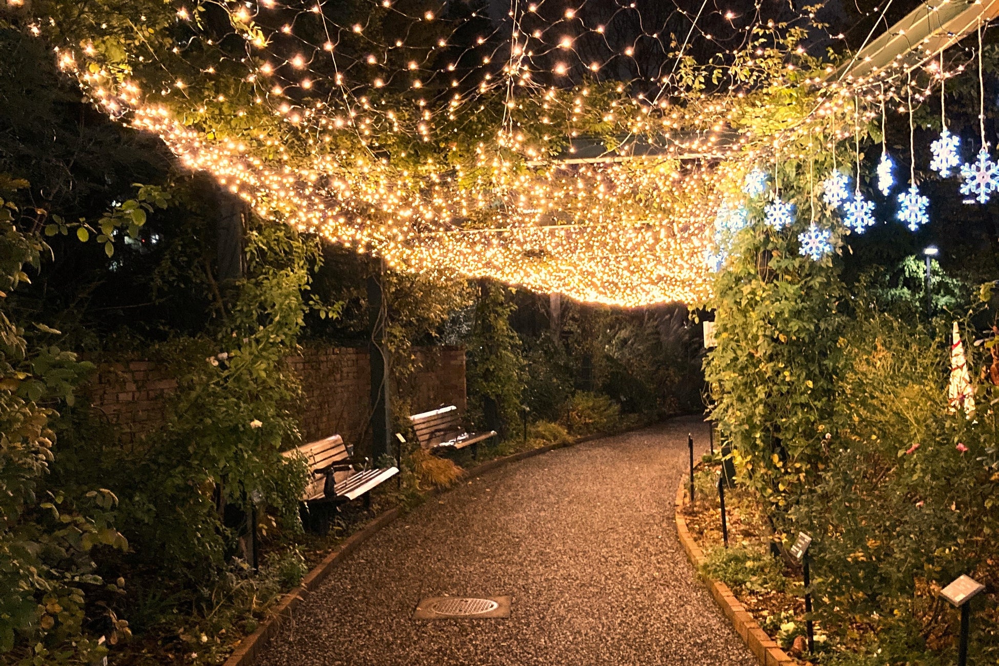 練馬区立 四季の香ローズガーデン、ウィンターワンダーランド開催/温かい光のクリスマスイルミネーションが夜のバラ園を彩る