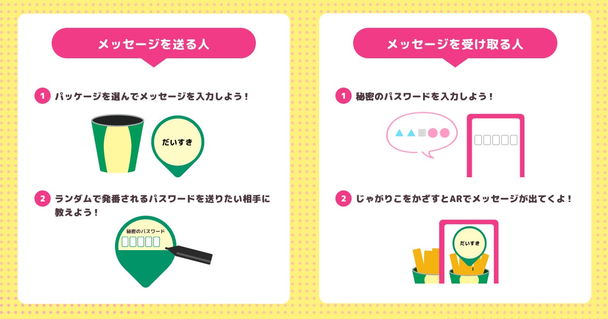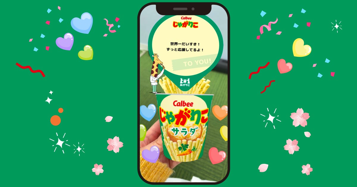「じゃがりこ」にちょっとした気持ちを載せて人に「あげる」行為、「あげりこ」がより楽しく、より手軽になる取り組みの一環としてAR(拡張現実)技術を用いてメッセージを送ることができる企画を実施