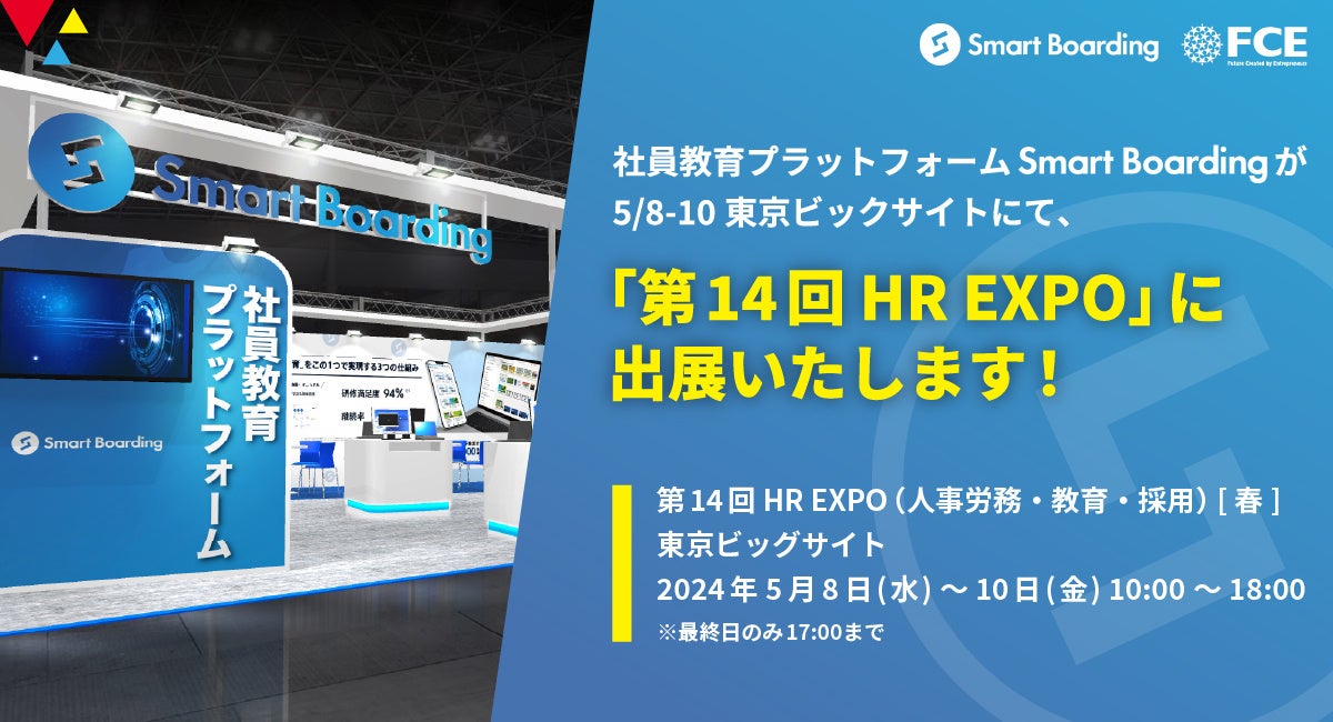 株式会社FCE(本社:東京都新宿区、代表取締役:石川淳悦、東証9564)が提供する、社員教育プラットフォーム「Smart Boarding」(スマートボーディング)(https://www.smartboarding.net/)は、2024年5月8(水)~10日(金)の3日間、東京ビッグサイトにて開催されます「第14回 HR EXPO(人事労務・教育・採用) [春] 」に出展いたします。