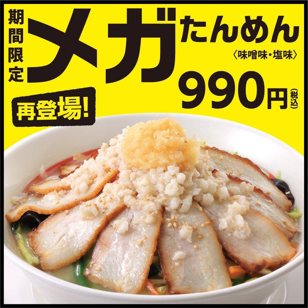 株式会社幸楽苑ホールディングス(本社:福島県郡山市)が運営する「幸楽苑」は、2024年4月15日(月)から、多くの再販のご要望にお応えし、たっぷりの野菜とチャーシュー10枚にニンニク、背脂を乗せた「メガたんめん」990円(税込)と、たっぷりの牛カルビを使用した「スペシャルみそカルビらーめん」990円(税込)の販売を開始します。