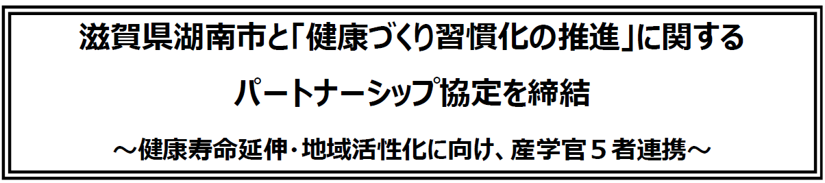 滋賀県湖南市と「健康づくり習慣化の推進」に関するパートナーシップ協定を締結~健康寿命延伸・地域活性化に向け、産学官5者連携~