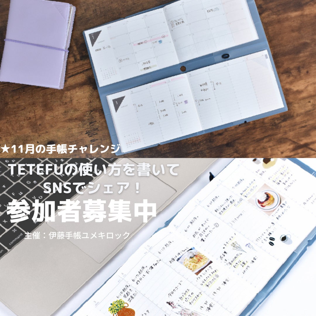 手帳製造・OEMを手がけて70年の歴史を持つ伊藤手帳株式会社(本社:名古屋市、代表取締役社長:伊藤 亮仁、以下伊藤手帳)は、折りたためる手帳「TETEFU(テテフ)」を活用し、手帳を使う楽しさを発見する「11月手帳チャレンジ」キャンペーン(以下、本キャンペーン)を開催いたします。