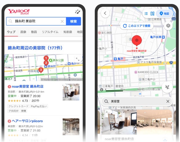 「Yahoo!プレイス」は、Yahoo! JAPANの地図や検索機能を通してお店や拠点の情報をインターネット上で公開し、更新できるサービスです。情報の登録・更新をすると「Yahoo!マップ」や「Yahoo!検索」を利用するユーザーが、ビジネスの営業時間や住所、電話番号のような基本情報から、お店の写真やメニュー、最新のニュースまで幅広い情報を確認することができるようになります。