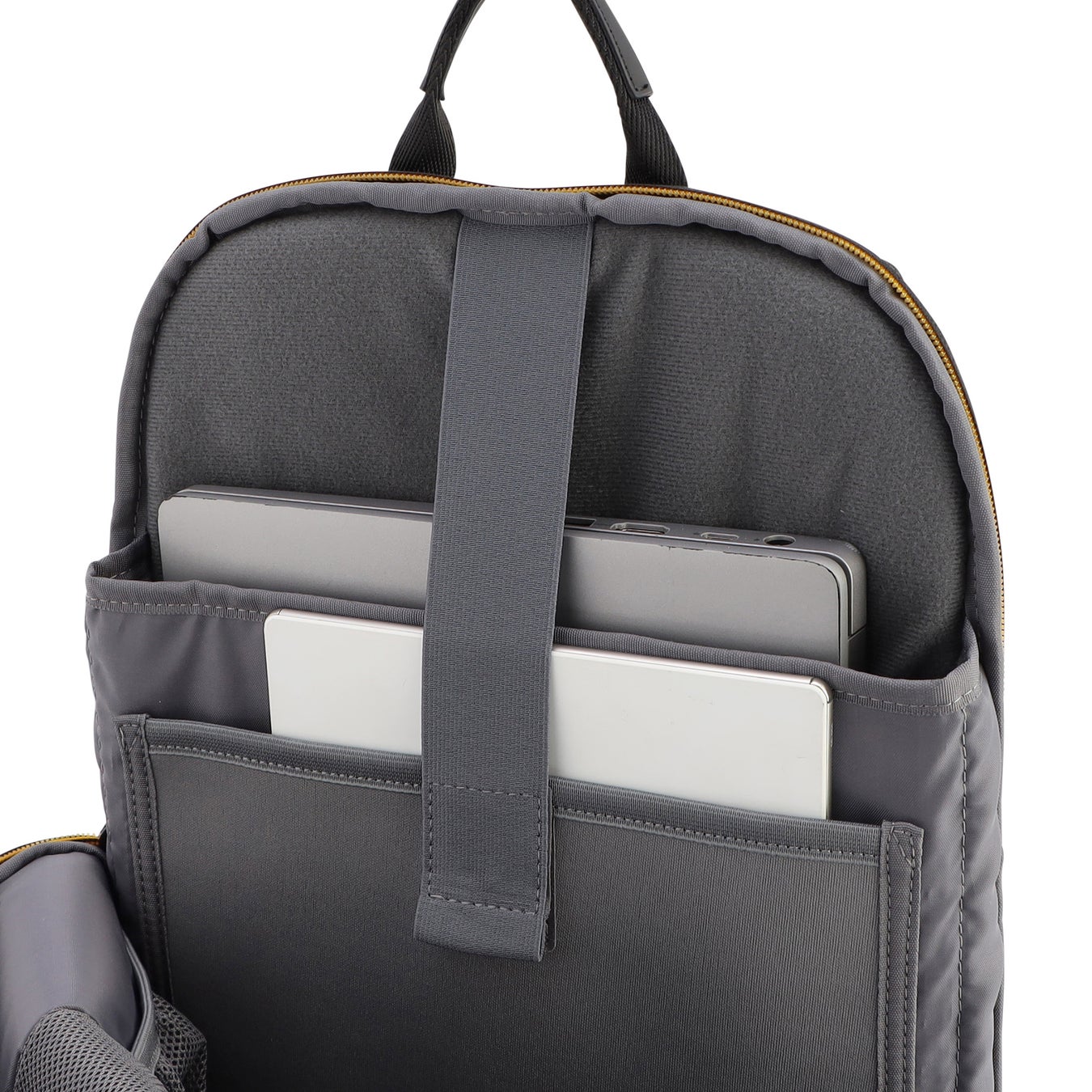 4サイズ全モデルにクッション性の高いPC・タブレットスリーブを備えています。また、ポケットを組み合わせたマルチコンパートメント設計により、書類や小物を細かく整理・収納することが可能です。 さらに、撥水加工が施された汚れに強い生地を採用しており、タフな使用にも適しています。