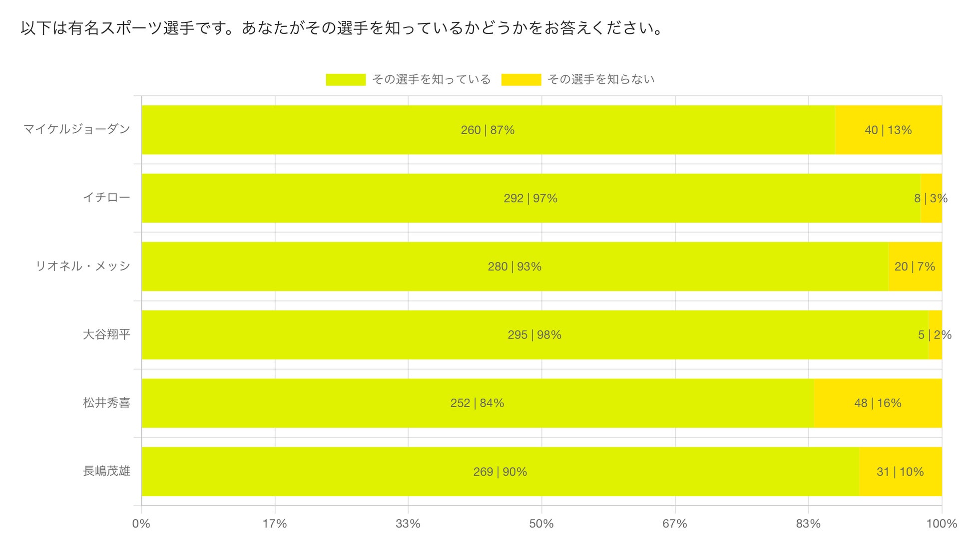 現役大学生300名を対象に、背番号が象徴的な他の有名スポーツ選手と比較してみました。(敬称略)