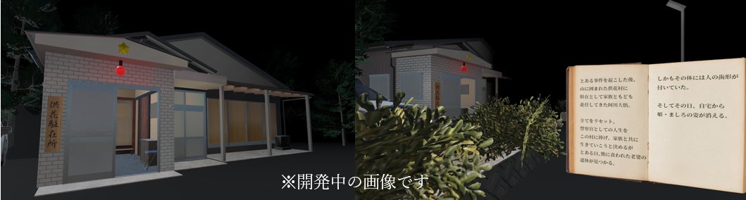 ユーザーは、「パラリアル名古屋」の会場からバスに乗ることで、阿川大悟ら家族が住む「供花村(くげむら)」の世界にワープ。村に赴任してきた警察官として、ドラマ同様に次々に起こる事件を体験することができます。また、ドラマに登場するキャラクターたちも3Dで登場し、建造物も本物さながらに再現。村に充満する不穏で排他的な空気や、緊迫感を楽しめます。ドラマの世界観に合わせたキャラクターたちの再現を、ぜひご覧ください。