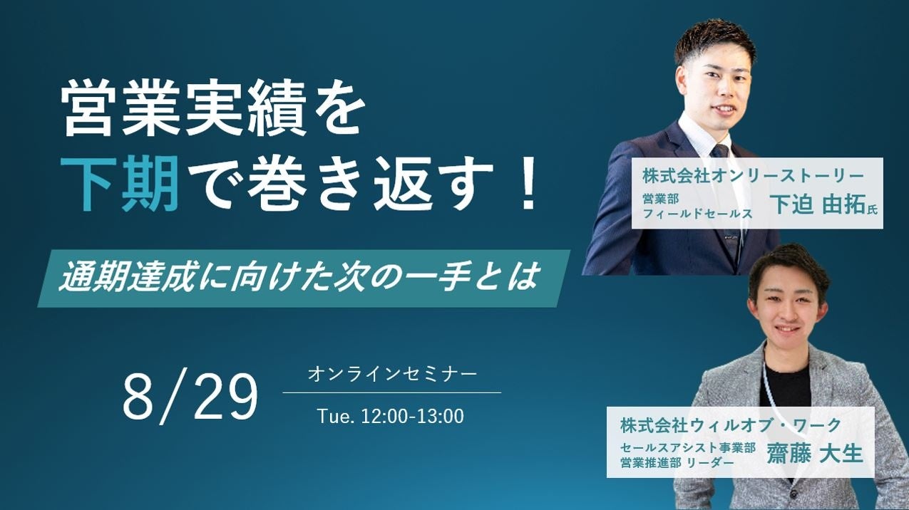 経営・営業支援を行う株式会社オンリーストーリーが、営業実績の通期達成をテーマに、ターゲティング/アプローチ手法/組織横断営業など8月以降の営業戦略構築について、2社の実体験をもとにご紹介します。