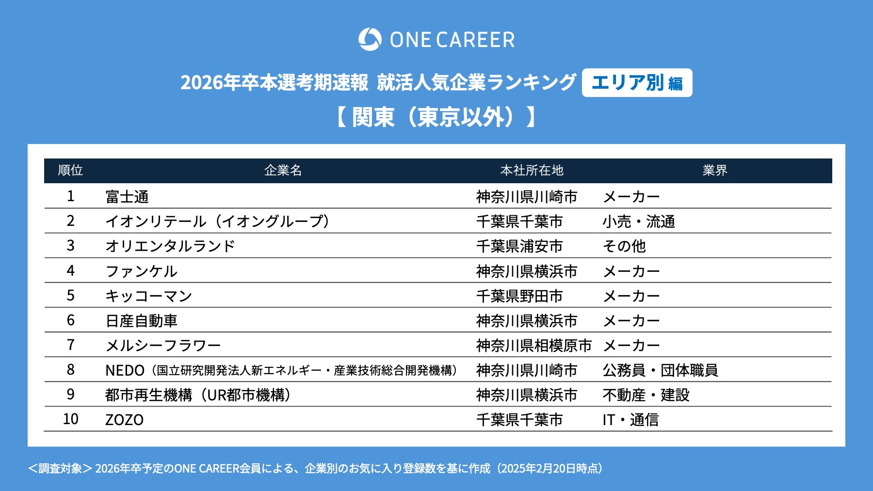 就活人気企業ランキング【エリア別編】(26卒本選考期速報)順位一覧