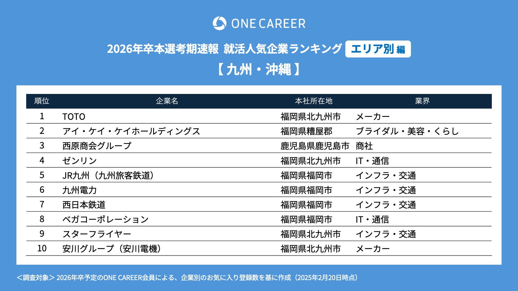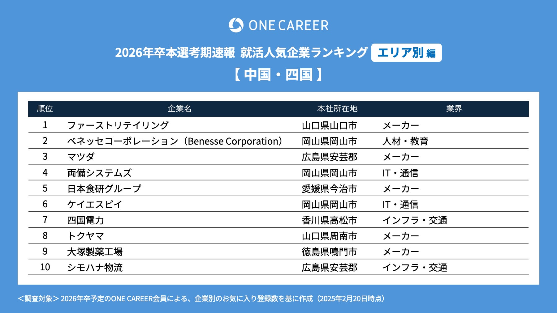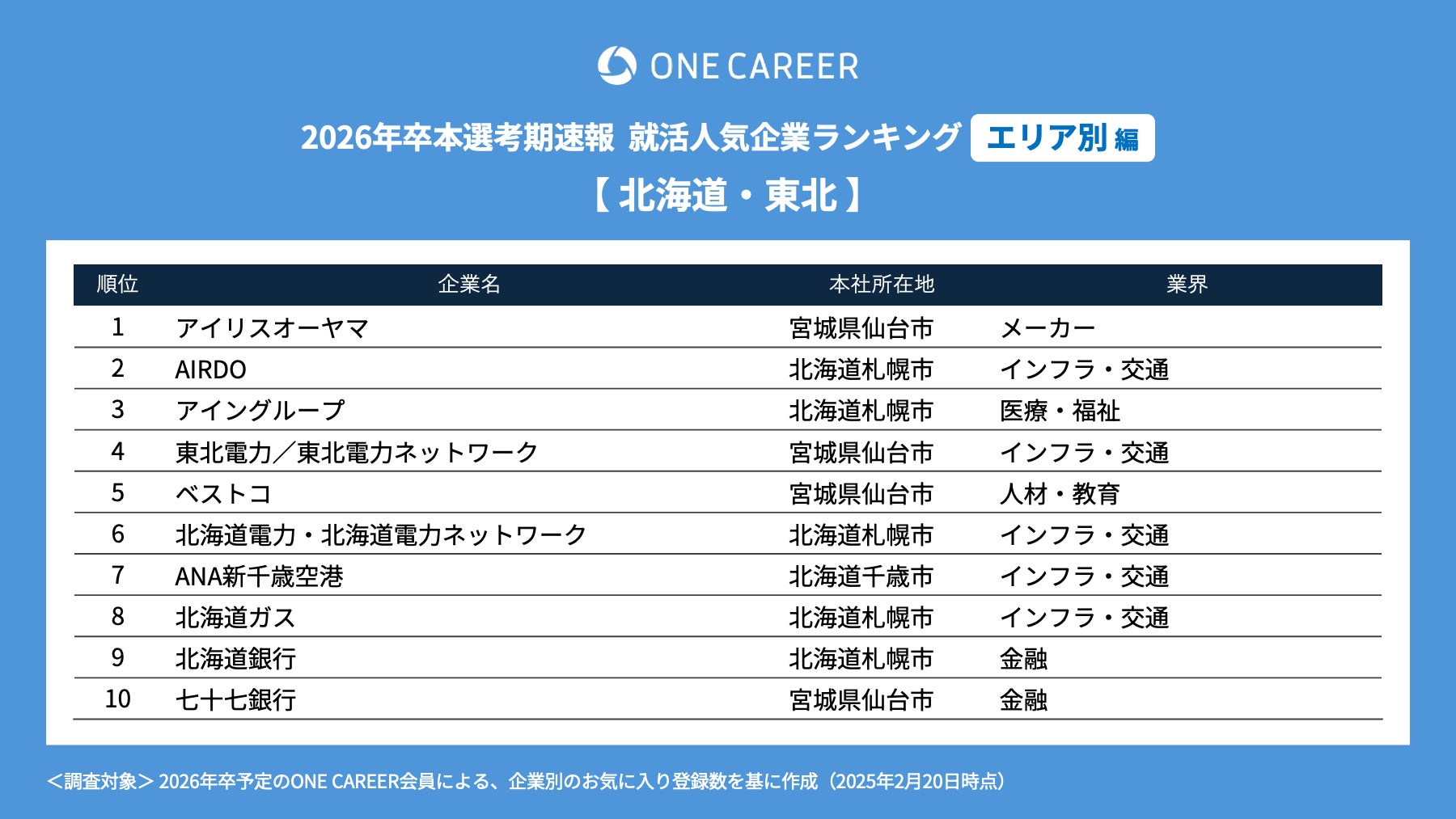 「ワンキャリア就活人気企業ランキング 【エリア別編】26卒本選考期速報」を公開