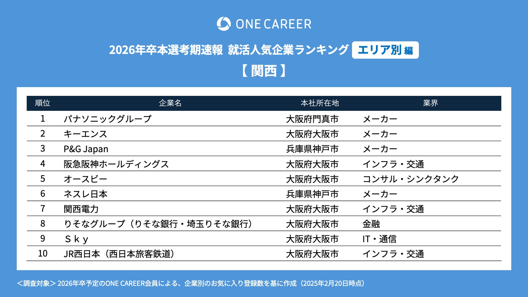 調査名 :就活人気企業ランキング【エリア別編】26卒本選考期速報
