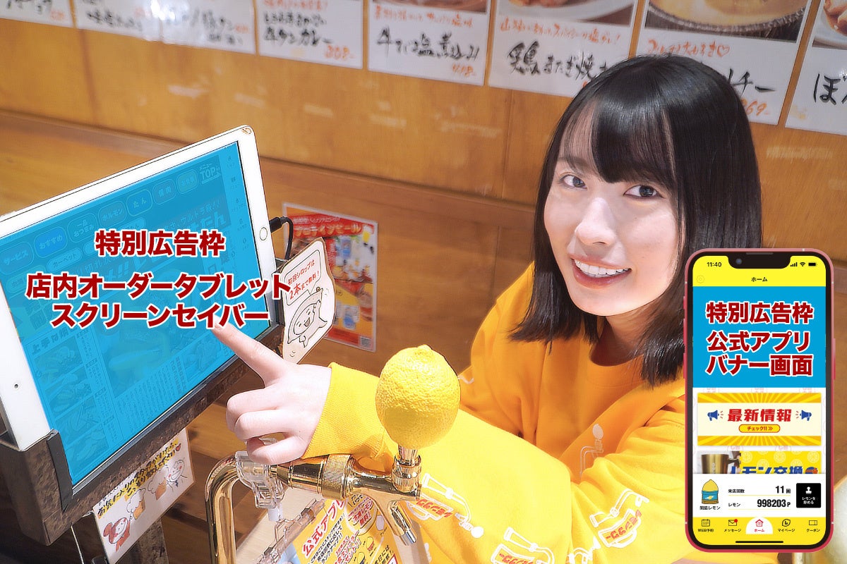 会員数26万⼈超のときわ亭公式アプリのバナー広告と、お好きな店舗のオーダータブレットにあなたの事業(活動)の広告を表⽰できます。