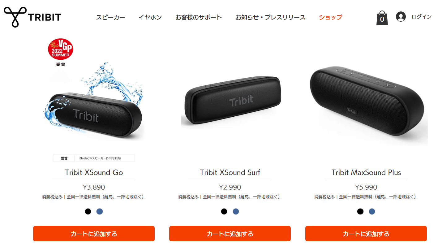 Tribit公式HPにオンラインショップを新設し、AmazonなどのECサイトにページ遷移することなく、直接購入できるようになりました。全国一律送料無料(離島、一部地域除く)でお届けいたします。