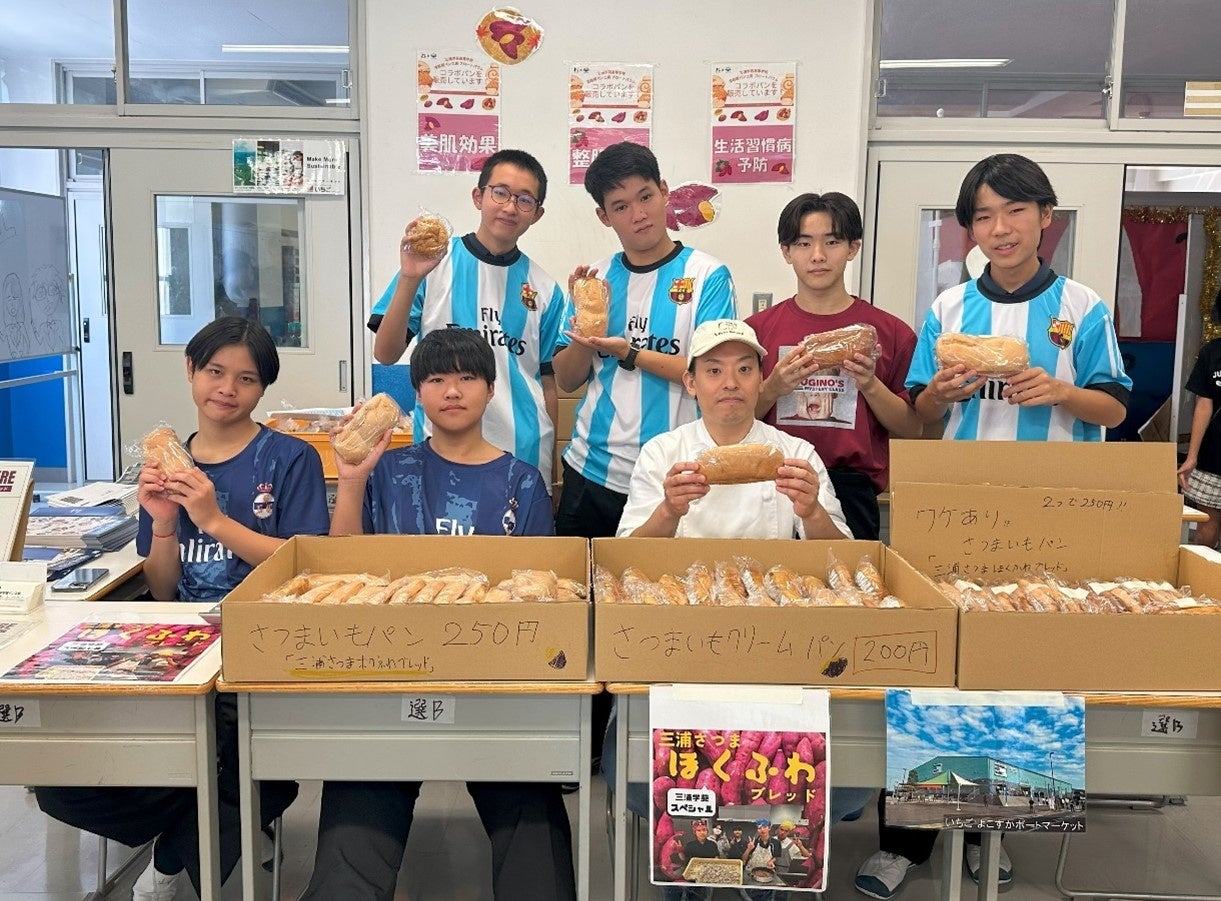 当社が参画する地域探究学習プログラム「よこすかengine」をきっかけにご縁をいただいた、横須賀市三浦学苑高等学校(以下、「三浦学苑」という。)の学生メンバーとともに、いちご よこすかポートマーケットの溶岩窯パン工房「Brot Baum」様のご協力のもと、三浦学苑の文化祭において地元のさつまいもをふんだんに使ったコラボパンを販売いたしました。
