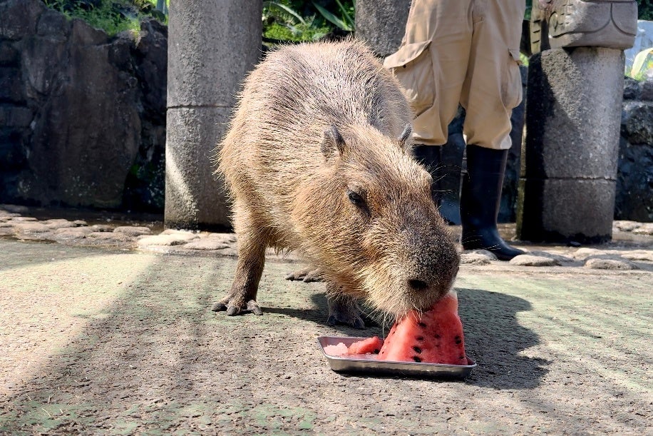 伊豆シャボテン動物公園、長崎バイオパーク、埼玉県こども動物自然公園、那須どうぶつ王国、いしかわ動物園は、2025年7月27日(日)「スイカの日」に『第10回カピバラのスイカ早食い競争』を行います。