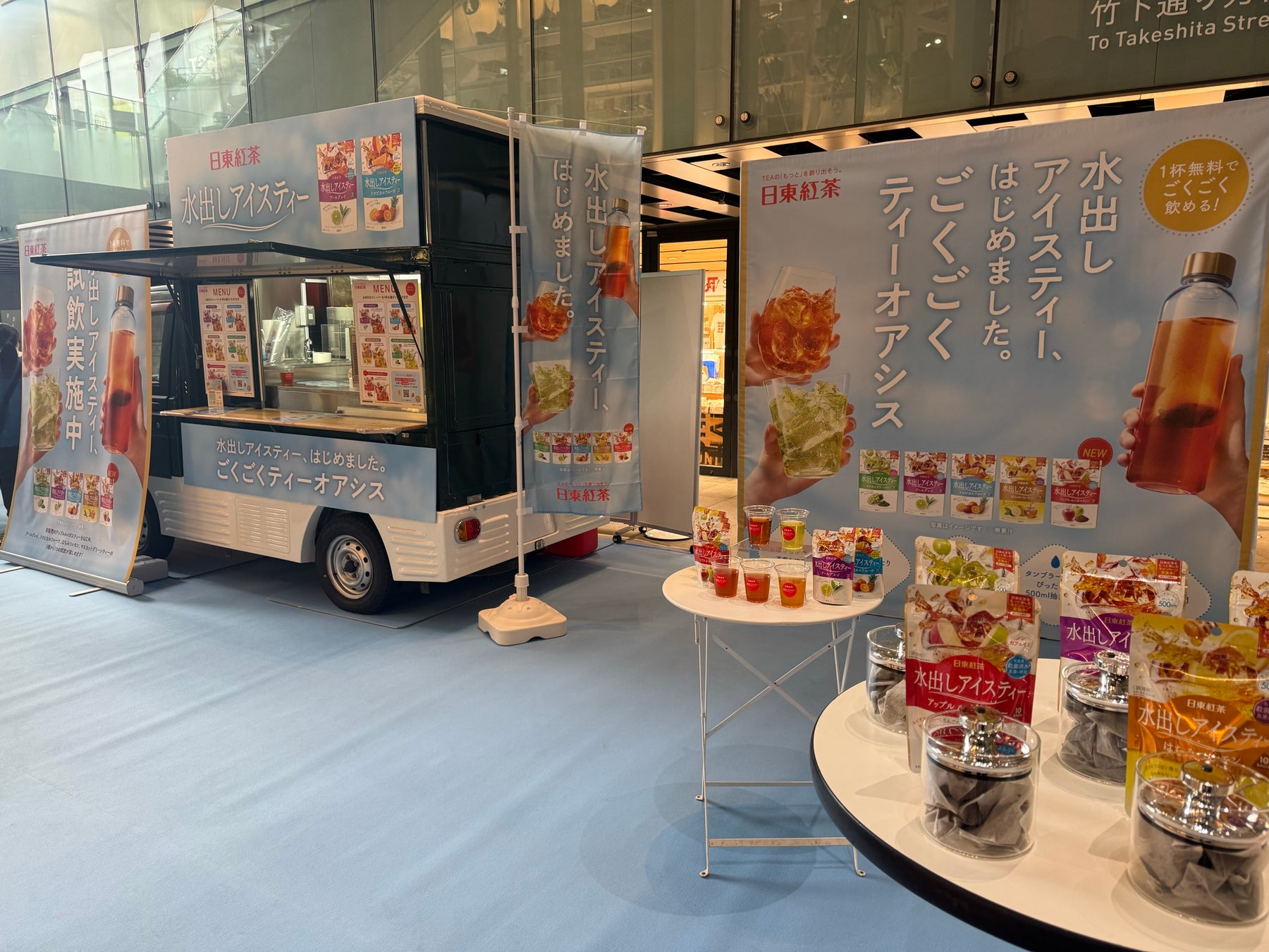 日東紅茶ブランドを展開する三井農林株式会社(本社:東京都港区、代表取締役社長:藤井 洋 以下、当社)は、5月24日(土)・25日(日)の2日間、WITH HARAJUKUにて「水出しアイスティー」を無料で楽しめるポップアップイベント「日東紅茶 水出しアイスティー、はじめました。ごくごくティーオアシス」を開催しました。たくさんのお客さまにお越しいただき“ごくごく”と爽やかなひとときをお届けいたしました。