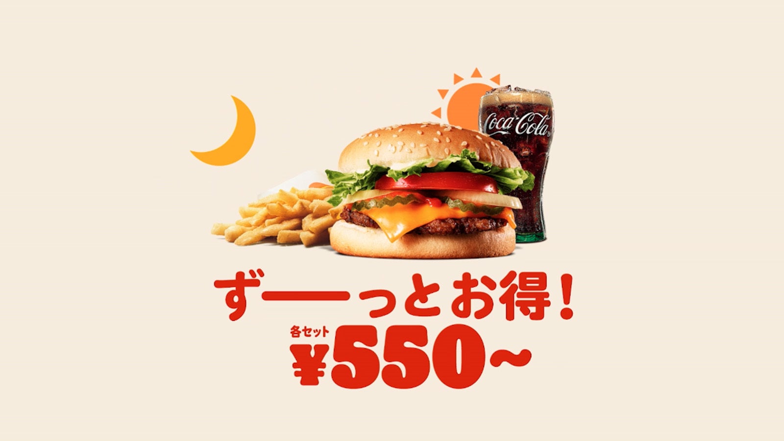 バーガーキング® の「オールデイ・キング」で、場所や時間、曜日を気にせず、本格バーガーのセットをずーっとお得にお楽しみください。