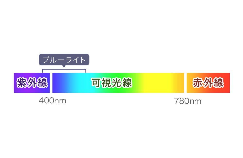 ブルーライトは紫外線の次に波長の短い光で目の奥まで届くと言われるエネルギーの強い光です。特に夜間などテレビの液晶画面を長時間見続けることによって目に負担がかかり、睡眠の質の低下や生活リズムを乱す要因でもあります。