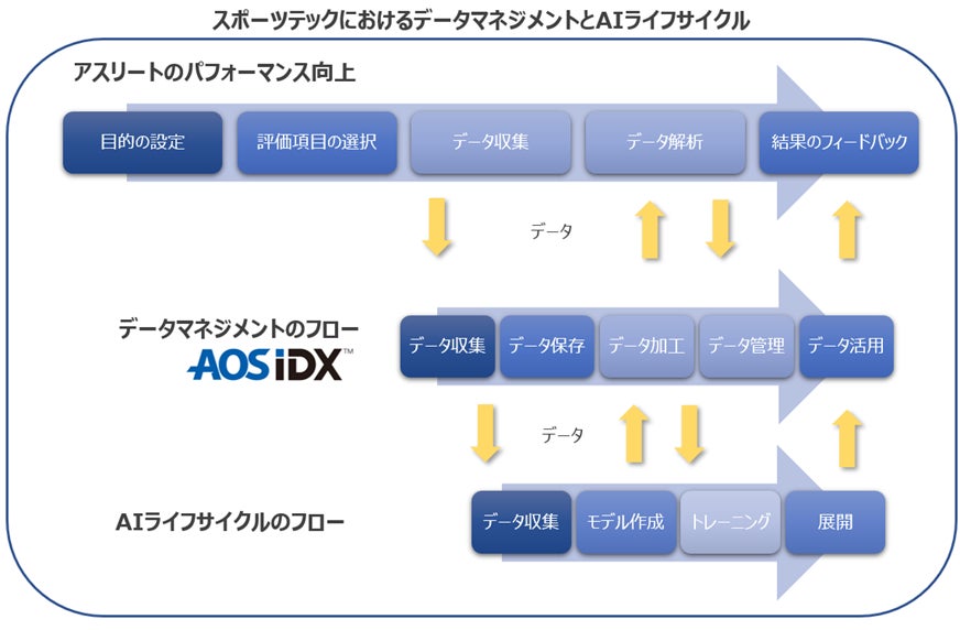 AOS IDXでは、こうしたAIライフサイクルの仕組みとマルチモーダルAIへの適用に基づき、AIデータにおけるAIシステムのためのAIデータ管理を行い、企業における優秀なデータがあって初めて優秀なAIシステムを実現できるというData to AIのコンセプトの元、AOS IDXによって、アスリートのパフォーマンス向上に向けたプラットフォーム構築を支援します。