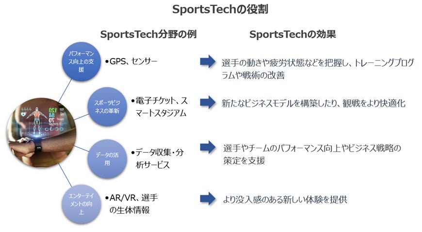 SportsTechとは、Sports(スポーツ)とTechnology(技術)を組み合わせた言葉で、このような社会的なニーズに応えるために生まれた新しい分野であり、スポーツにおいてテクノロジーを活用してスポーツに関わる人々により豊かな体験や成果を提供することを目的としています。