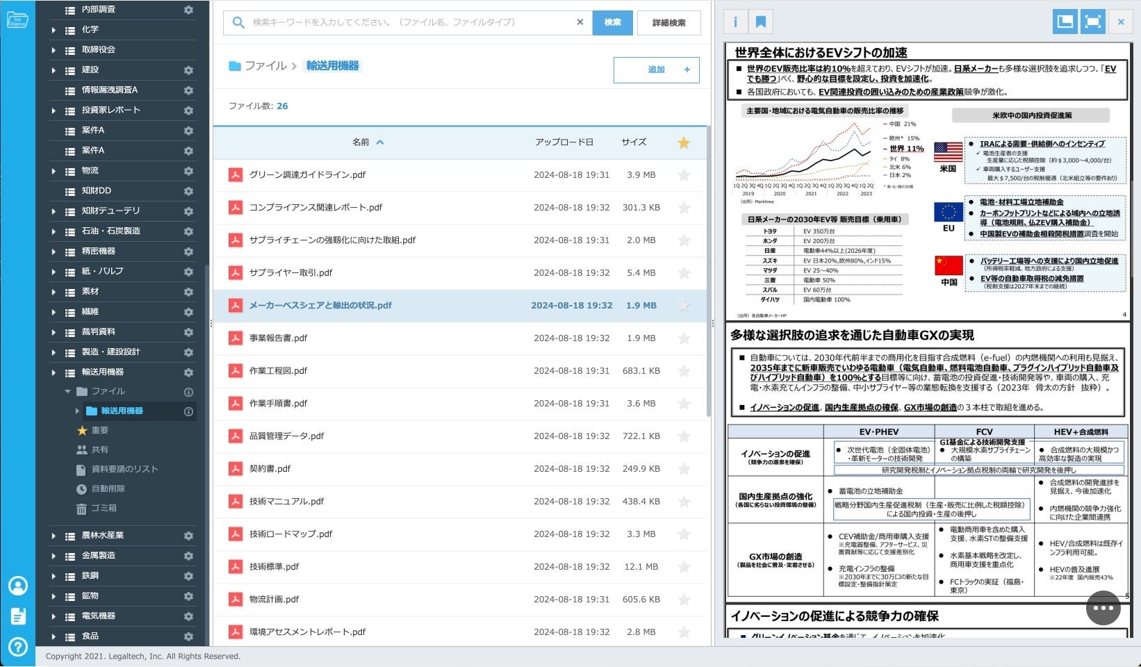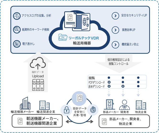 リーガルテックVDR(Virtual Data Room) 輸送用機器は、データの安全な管理と共有を支援するプラットフォームであり、日本の輸送用機器業界が直面する課題に対していくつかの方法で解決策を提供できます。