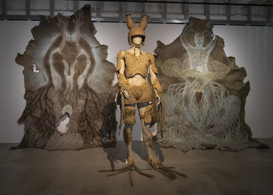 左:『特別な呼吸 』 天野 雛子/右:『リンジンの標本Ⅱ(天)』、『リンジンスーツ』、『リンジンの標本Ⅲ(開)』 ささきなつみ