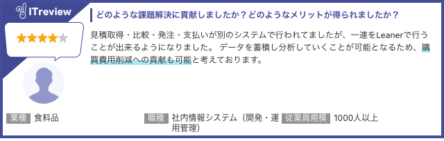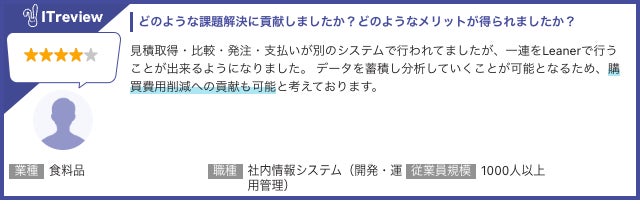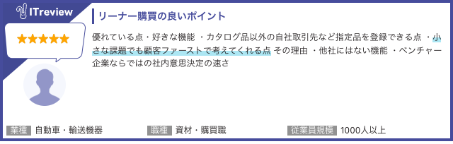 リーナー購買の受賞カテゴリ「購買管理システム」