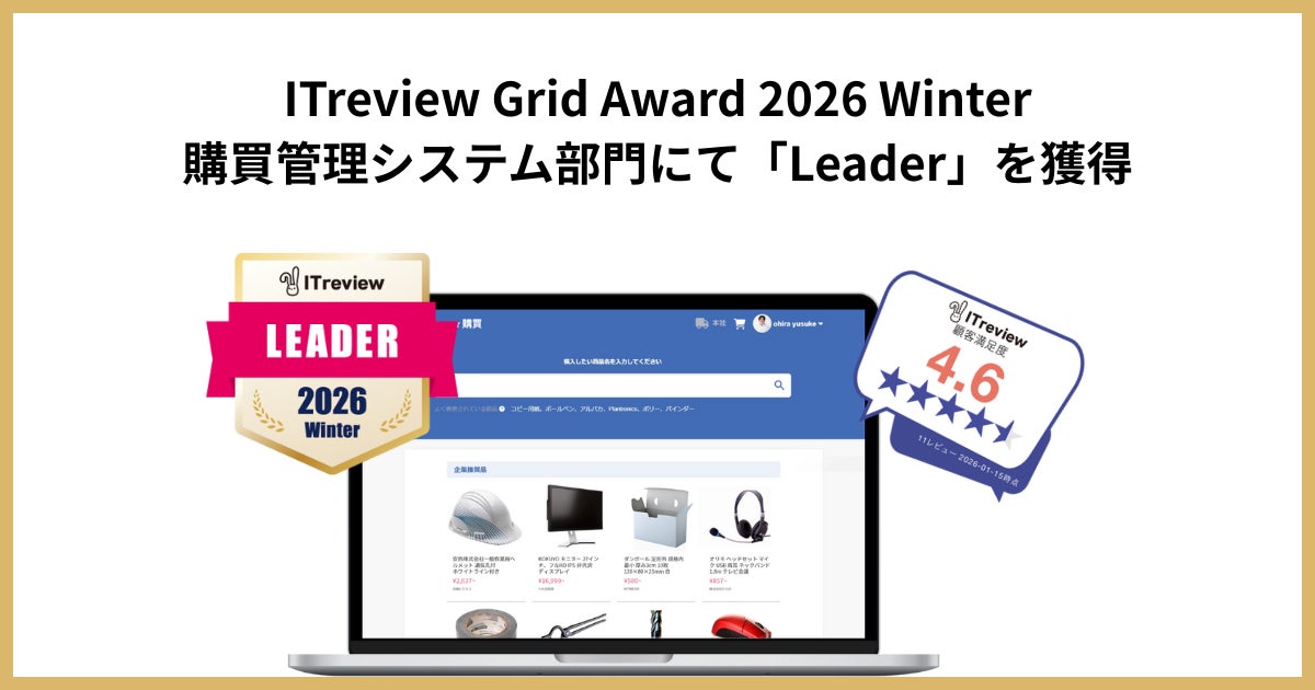 株式会社Leaner Technologies(本社:東京都品川区、代表取締役CEO:大平 裕介、以下「リーナー」)は、ビジネス向けIT製品・クラウドサービスのレビュープラットフォーム「ITreview」が発表する「ITreview Grid Award 2026 Winter」において、リーナー購買が「Leader」を受賞したことをお知らせします。