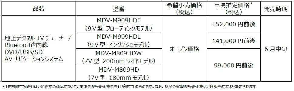 AVナビゲーションシステム“彩速ナビ”「MDV-M909HDF」ほか計4モデルを発売