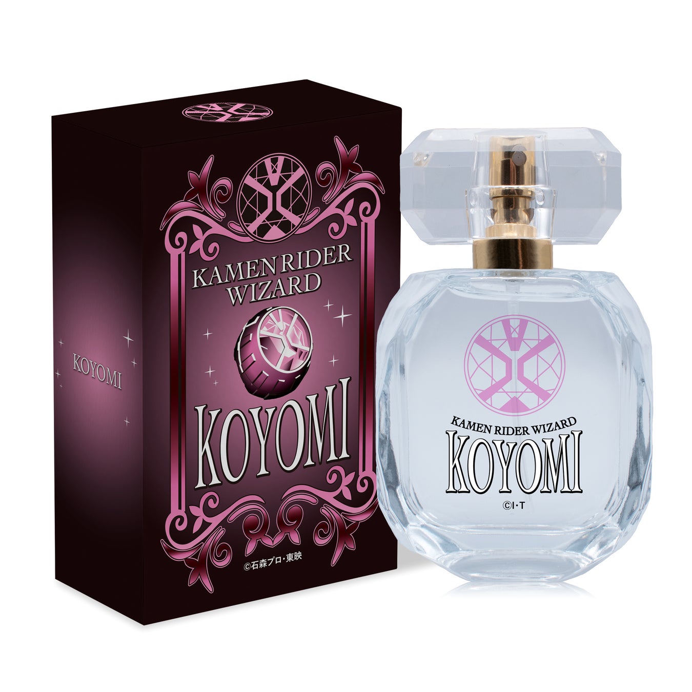 本作のヒロイン・コヨミをイメージした香水です。爽やかなフルーティーノートのトップノートは人間とファントムを見分けることができ、水晶玉を通して離れた場所を透視できる能力で晴人の戦いを支え、普段は物静かだが、晴人のことになると感情がむき出しになる可愛らしいコヨミをイメージ。フルーティーノートに可憐なフローラルブーケが合わさるミドルノートは当初は凛子・瞬平に対しては自分と晴人の間に割り込むのを快く思わなかったが、凛子も瞬平も自分と同じ「晴人から希望をもらった」者同士だと聞き、心を開いていき普通に笑顔を向けるようになっていくコヨミの心の変化をイメージしています。トップの香り立ちとは真逆に落ち着いた香りに変化するラストノートは自分は幸せだったことを伝え賢者の石をホープウィザードリングという形で晴人に託したコヨミの晴人への想いが表現されています。