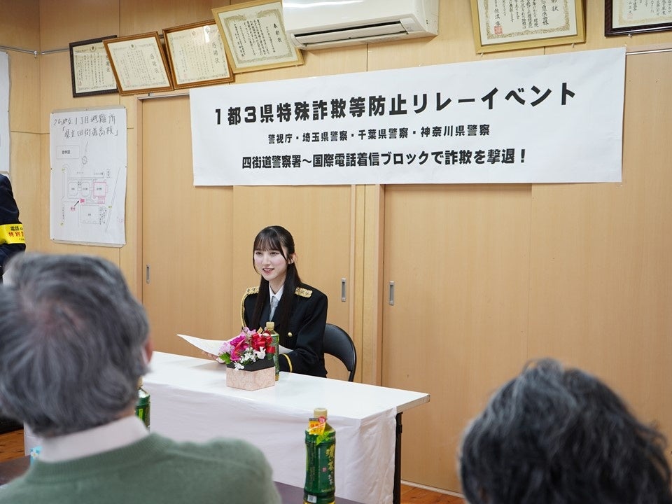 首都圏で多発する特殊詐欺等被害を受け、管轄を超えた連携により各種対策を推進するため、1都3県(東京都・埼玉県・神奈川県及び千葉県)各警察において、リレー形式で広報啓発活動を実施したもの。