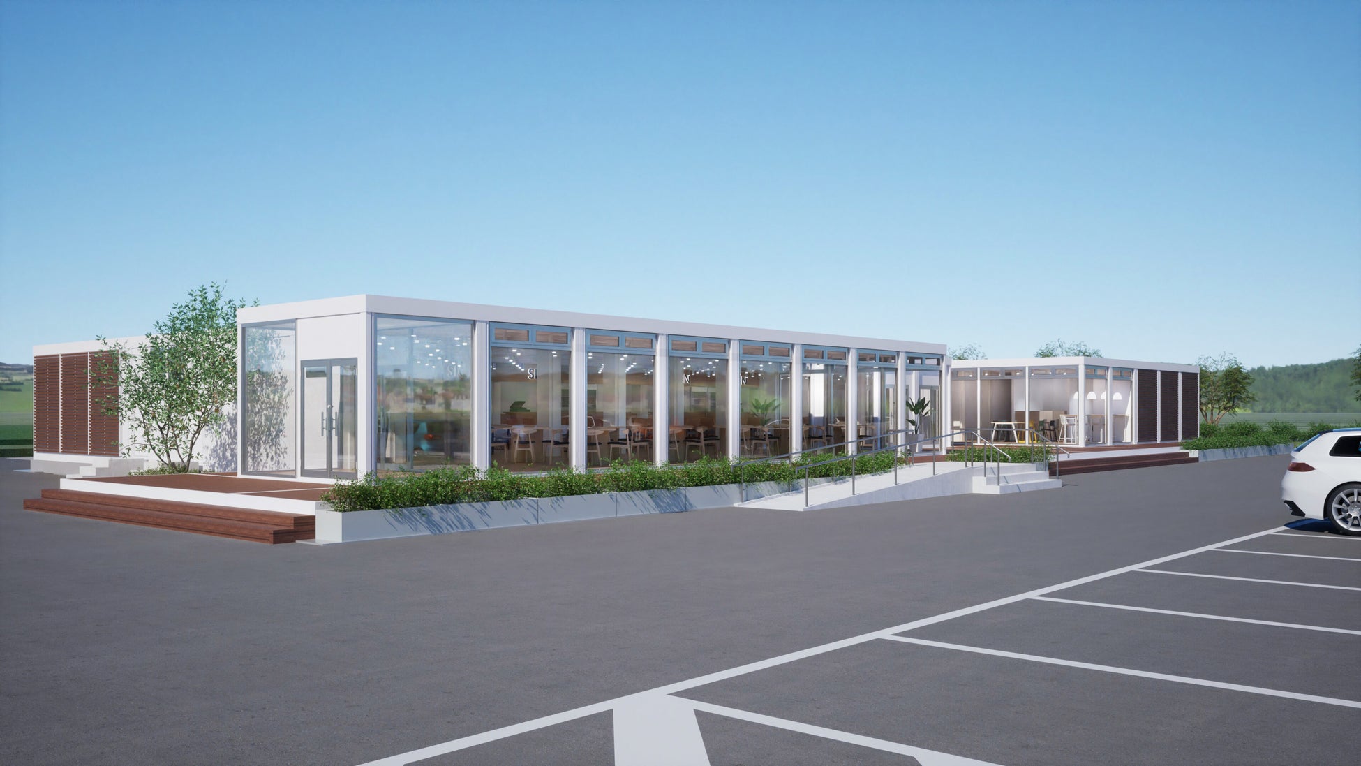 こうした状況を受け、石川県に”食を起点とした関係人口創出”の設備計画を提案した結果、被災した6つの飲食事業者と当社が「一般社団法人のと里山空港飲食事業者協議会」を設立し、のと里山空港第一駐車場内に、仮設飲食店街を開業する運びになりました。本施設では、6つの飲食店が入居するだけでなく、コワーキングスペースも完備しているため、ボランティアとして能登を訪れた方のほか、仕事や観光で訪れた方など幅広い方に利用されることを想定しています。また、能登官民連携復興センターが入居予定です。
